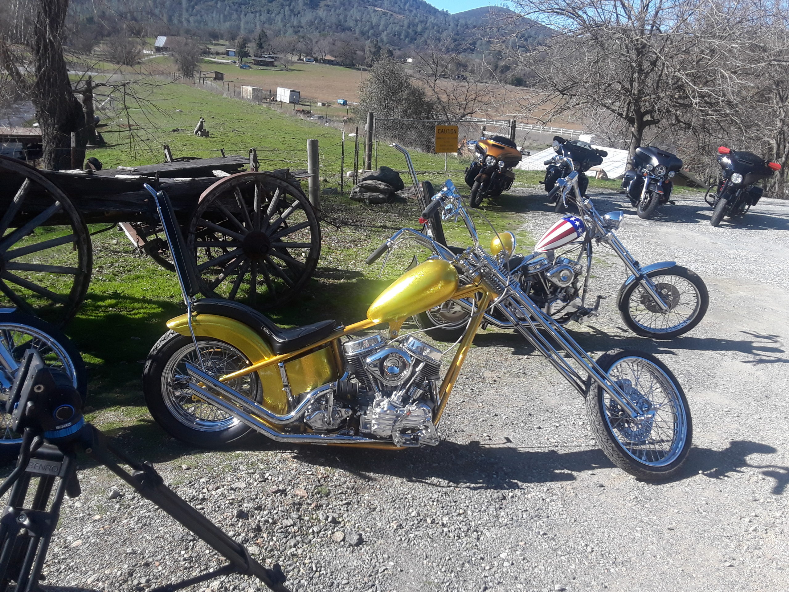 That’s when I made a few well-placed phone calls. First call was Ron Paugh, owner of Paughco Motorcycle Accessories. Once Ron was told the idea of this bike build and the movie connection he was all in. The second call was to Mondo Porras of Denver’s Choppers. Mondo jumped all in when he heard Ron was involved. Both companies have been in the motorcycle industry for over 50 years; Paughco is known for making everything you need to build a custom or classic Harley from the ground up, they even do their own in-house chrome plating. Mondo is the Godfather of choppers, famous for his extended Springer front ends in the proud Denver’s Choppers tradition as seen in the 18-over Springer on the Gold Chopper. Both companies are in Nevada, Paughco is in Carson City and Denver’s Choppers is in Reno. Together, they offer the perfect pairing to create the unique Golden Chopper on these pages.